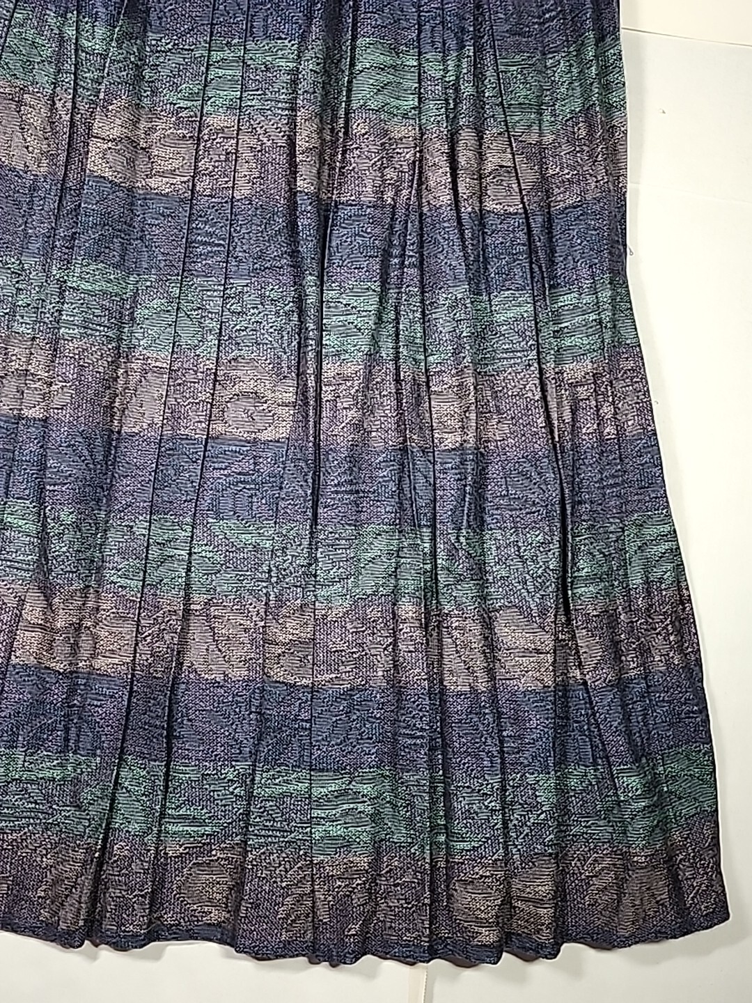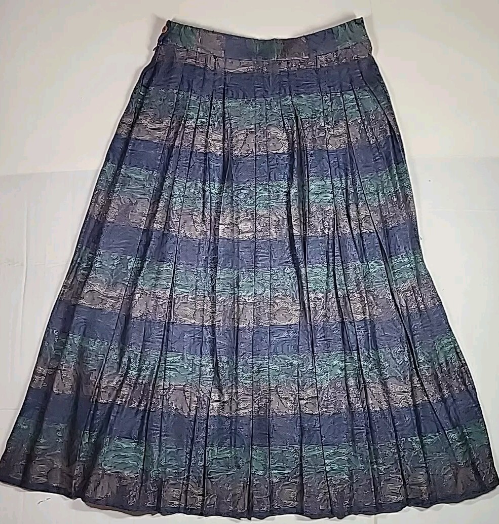 color Stripes Teal, Purple, very Light Blush Color Midi Pleated Side Zip And Button Skirt 🔶️This does have a few small little picks / pulls in the fabric. Please see the photos provided above. 🔶️Approximate measurements were taken with the item laying flat. 🔶️Waist - 14" Doubled 28" 🔶️Waist to Bottom - 33" 🔶️The overall condition of this is excellent. 🔶️This has been cleaned per eBay standards, but I always recommend for buyers to properly wash items according to care tag in case of allergies or detergent sensitivities. 🔶️These are from a smoke-free pet friendly home. 🔶️This will ship fast and be packaged with care to ensure safe travels to the new owner. •☆ Please see Photos & Zoom in for the complete accurate condition of the item(s). Pictures are a very important part of the items condition and exact items you will be receiving when purchased. •☆ Everything is sold AS-IS in condition seen in photos provided & description provided. If I forgot to mention any details about the item or if you have any questions or concerns. Message me please and ask them before purchasing. •☆ Please make sure these item(s) , or lot is right for you before purchasing. No refunds or returns. If a return is approved, the original shipping cost will not be refunded, and the buyer pays return shipping. •☆Check out my other listing. I have a wide variety of items in my store and post new items almost every day. •☆ Please don't hesitate to message me directly with any questions or concerns about the item. •☆ I ship fast and go to the post office daily, so you can receive items purchased promptly. •☆ All items are in Good Vintage Pre-Owned Condition with Normal Wear and Fading from the vintage age of the item(s). They have normal or typical Blemishes, Scratches, wear, Spots, Scuffs, & Flaws to be expected with age of them. •☆ Vintage & pre-owned items may show typical signs of wear from age & use of them. Some more than others. •☆ I strive to make sure I describe my items accurately and precisely for buyers and disclose any issues that could be present with the item(s). •☆ If an accessory or part is missing in the pictures I have provided, it is not included with the item(s) being bought. •☆ I inspected everything very carefully and took many pictures of my items to make sure everything is disclosed in the description to the best of my knowledge. •☆ Please make sure your shipping address is correct before purchasing the item(s) as I can not make any changes or alter it in any way per eBay and Paypal Protection Policy. •☆ ALL VINTAGE SALES ARE SOLD AS-IS IN USED PRE-OWNED CONDITION PLEASE SEE PHOTOS AND READ THE DESCRIPTION BEFORE PURCHASING ALL SALES ARE FINAL. •☆ Thank you for looking at my store, and have a wonderful, blessed day. •☆ If you love the item you purchased, please leave feedback for me. If, by chance, you have issues with the item, please message me directly before leaving negative feedback, and I will do my best to make things right with you.