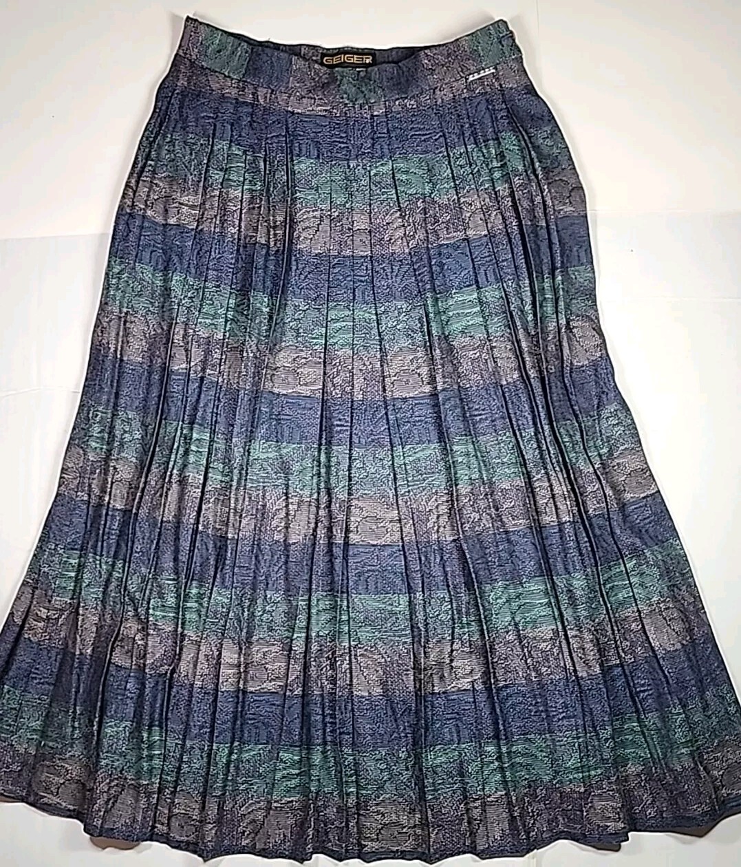 Vtg Geiger Austria Wool Blend Midi Skirt Sz 38 US 8 Floral Green Purple Pleated